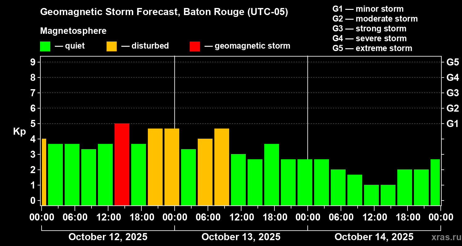 Geomagnetic storm forecast in Baton Rouge for Oct 12, 2025