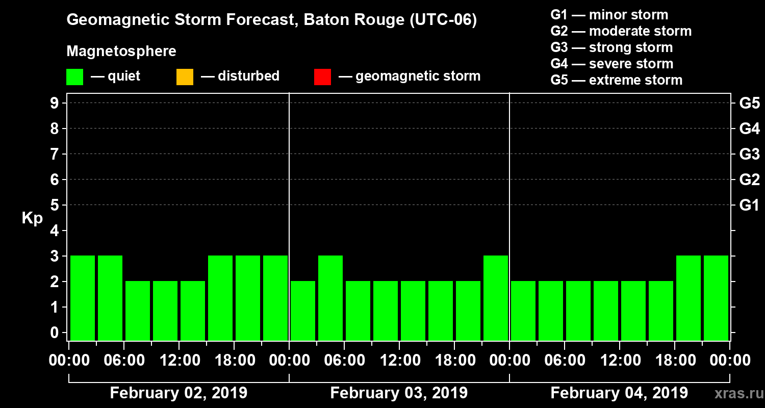 Geomagnetic storm forecast in Baton Rouge for Feb 02, 2019
