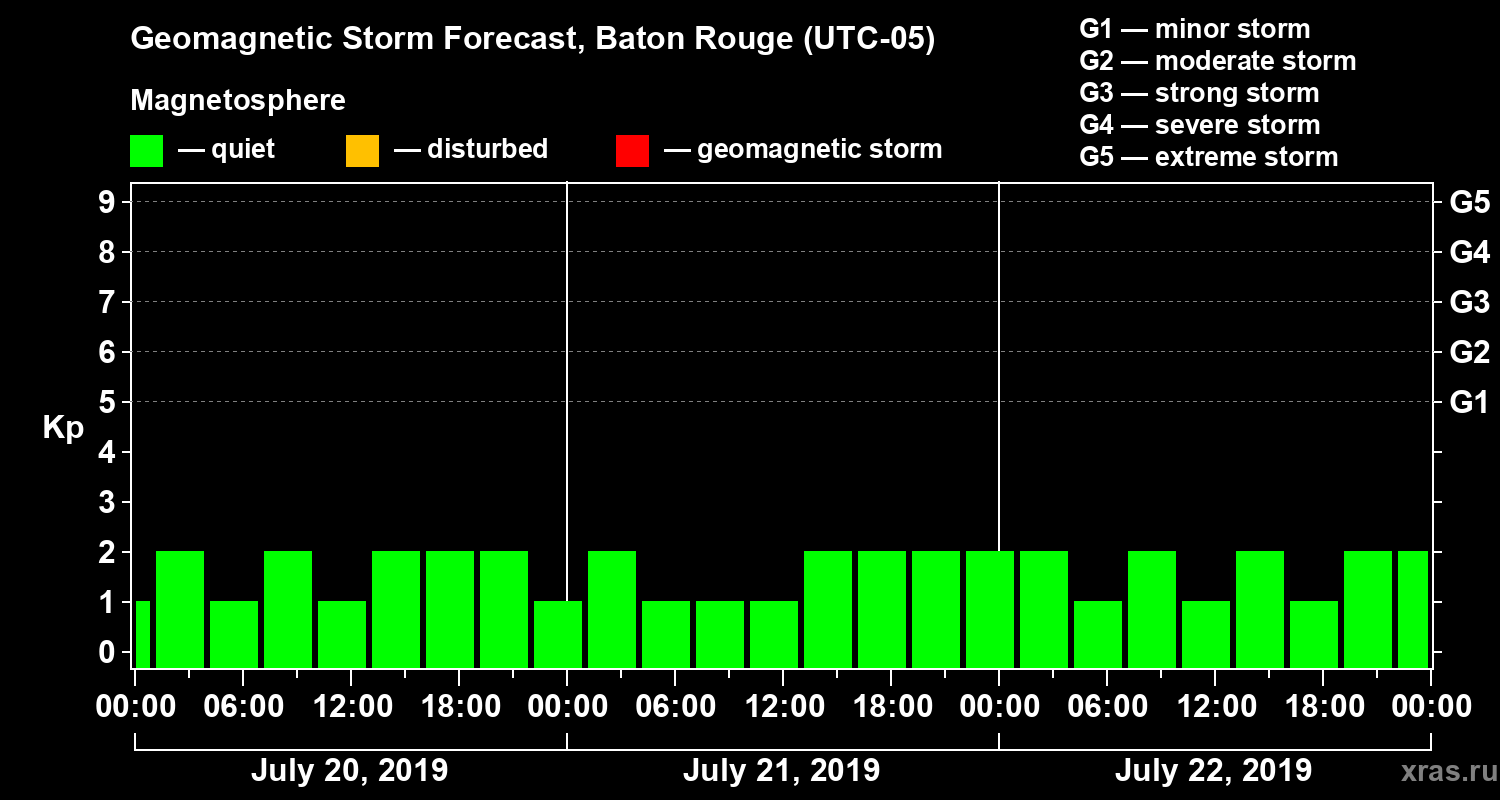 Geomagnetic storm forecast in Baton Rouge for Jul 20, 2019