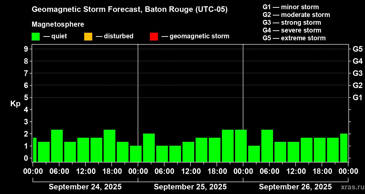 Geomagnetic storm forecast in Baton Rouge for Sep 24, 2025