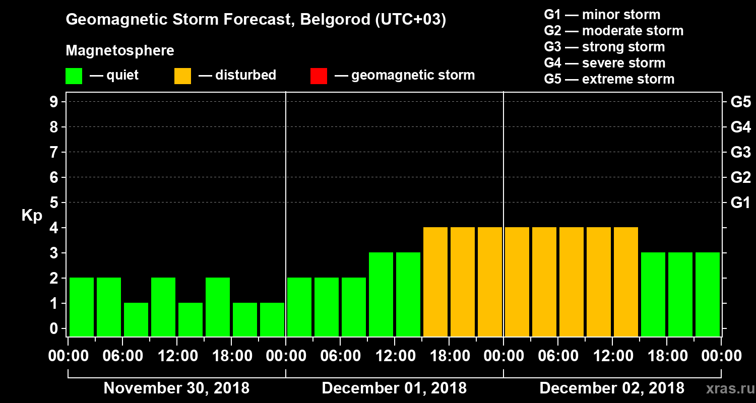 Geomagnetic storm forecast in Belgorod for Nov 30, 2018