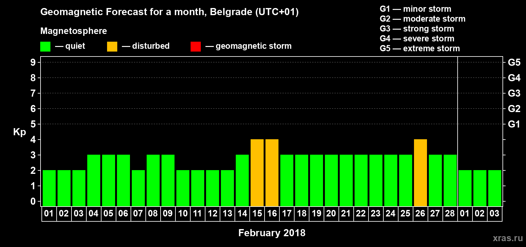 Geomagnetic storm forecast in Belgrade for Feb 01, 2018