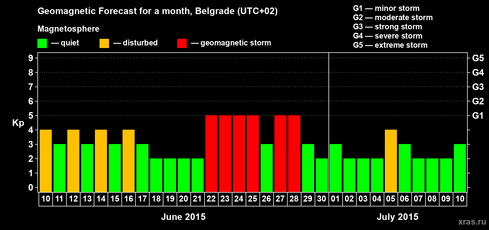 Geomagnetic storm forecast in Belgrade for Jun 10, 2015