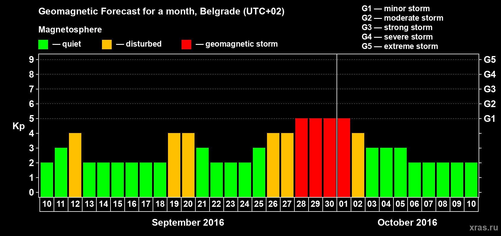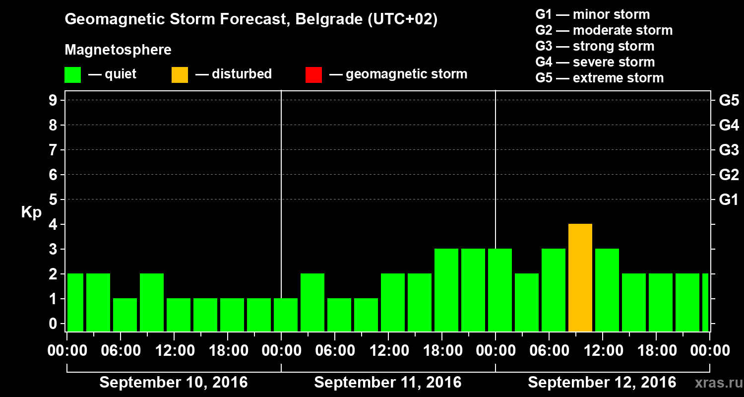Geomagnetic storm forecast in Belgrade for Sep 10, 2016