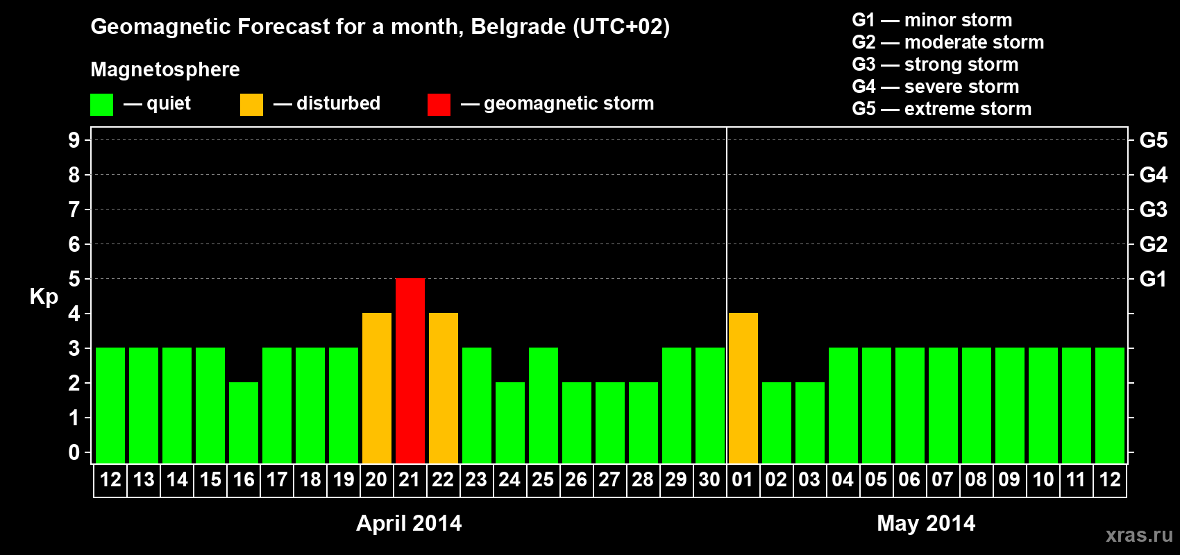 Geomagnetic storm forecast in Belgrade for Apr 12, 2014