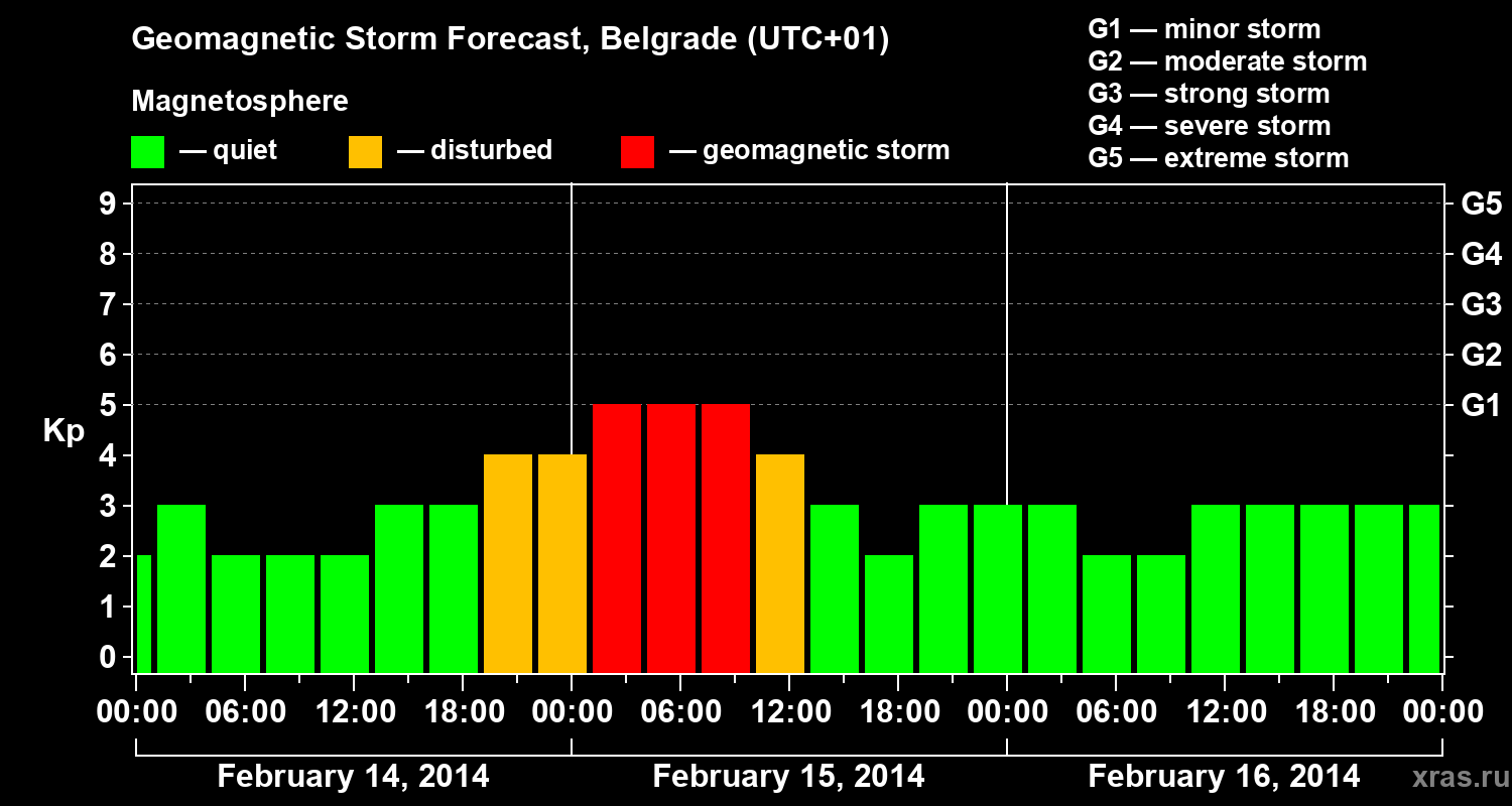 Geomagnetic storm forecast in Belgrade for Feb 14, 2014