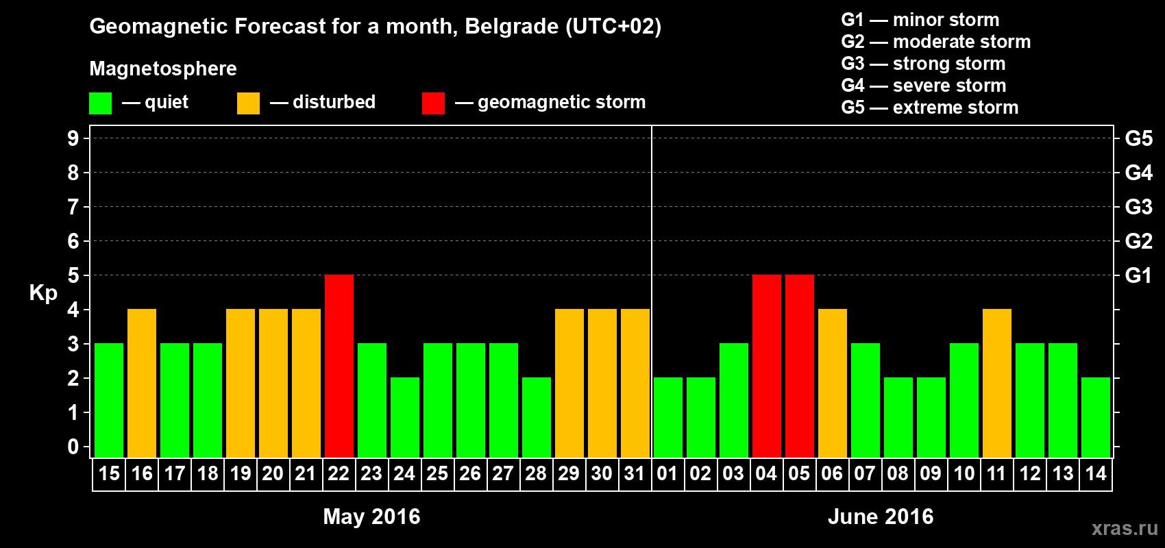 Geomagnetic storm forecast in Belgrade for May 15, 2016