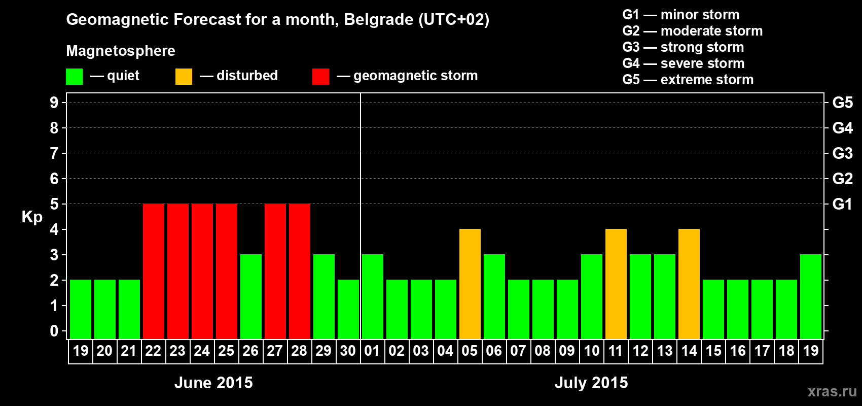 Geomagnetic activity forecast in Belgrade — Jun 19, 2015