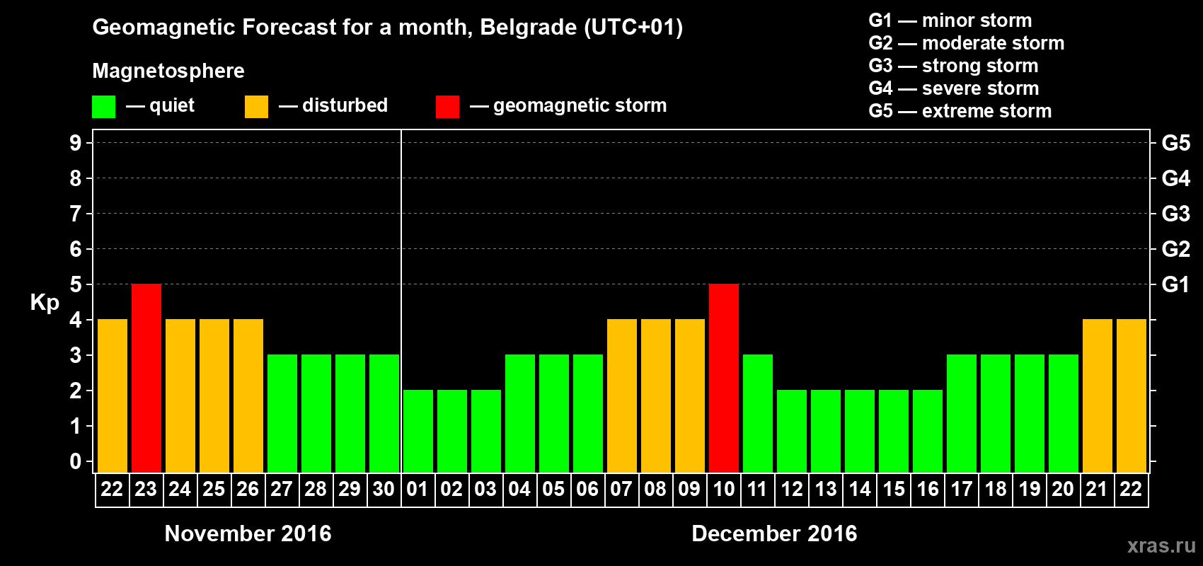Geomagnetic activity forecast in Belgrade — Nov 22, 2016