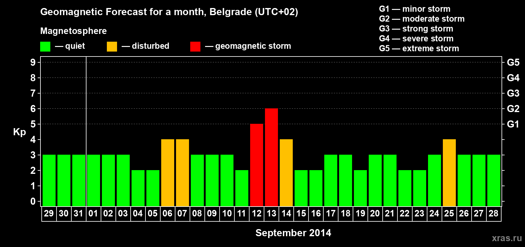 Geomagnetic storm forecast in Belgrade for Aug 29, 2014