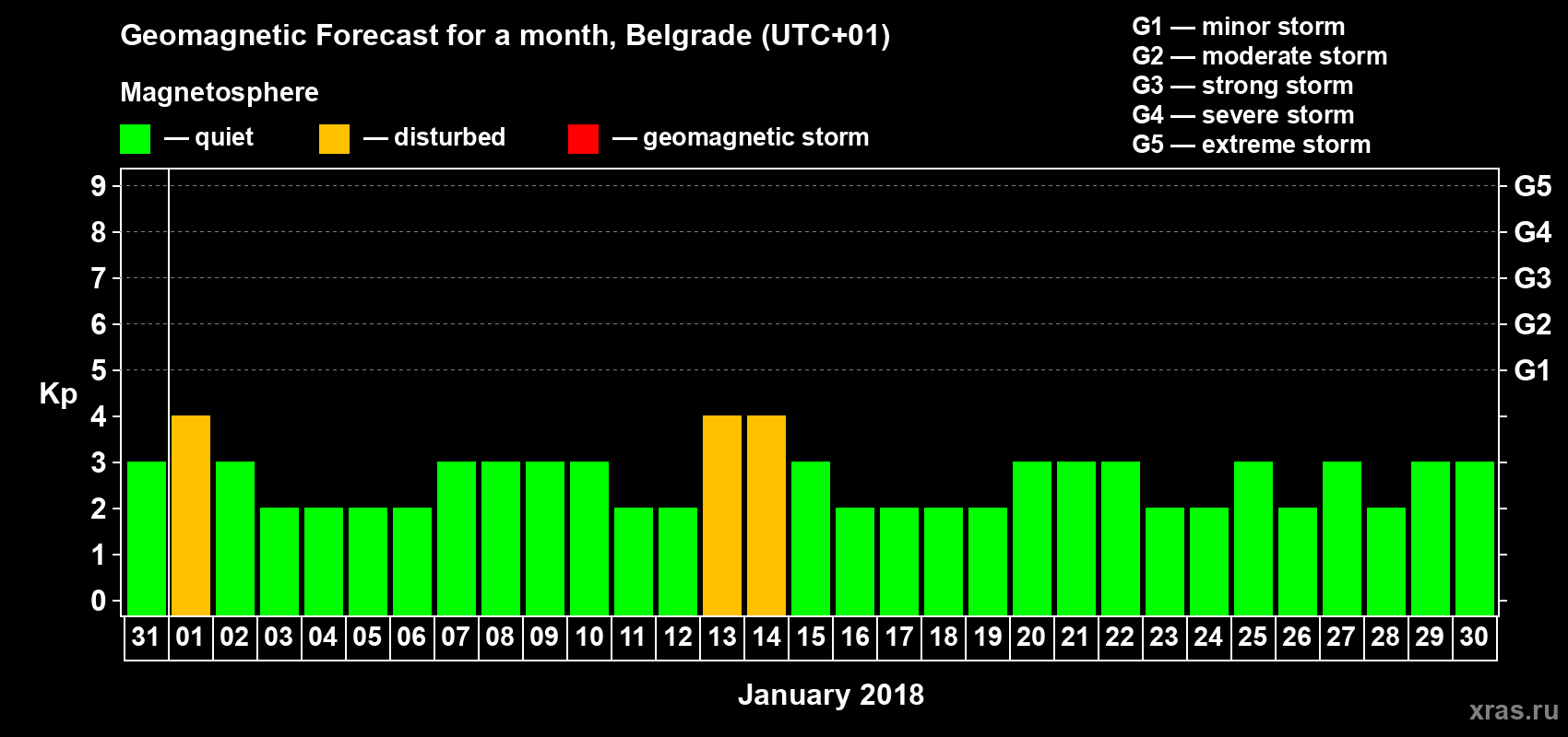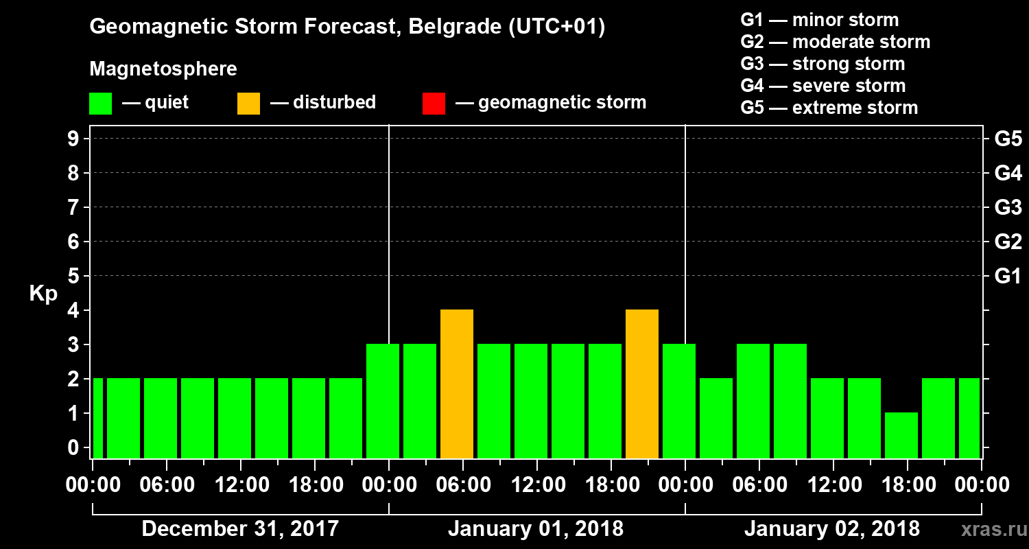 Geomagnetic storm forecast in Belgrade for Dec 31, 2017