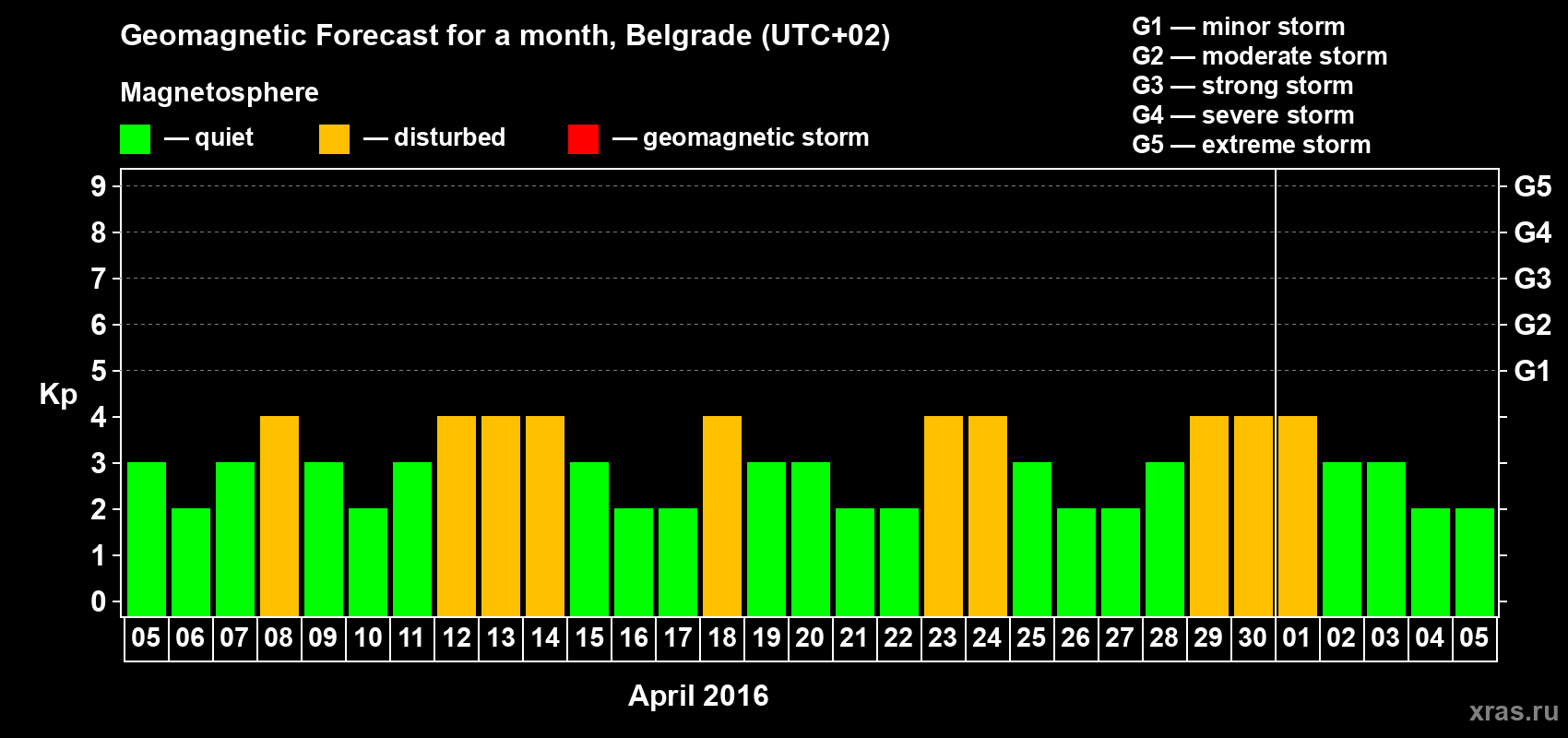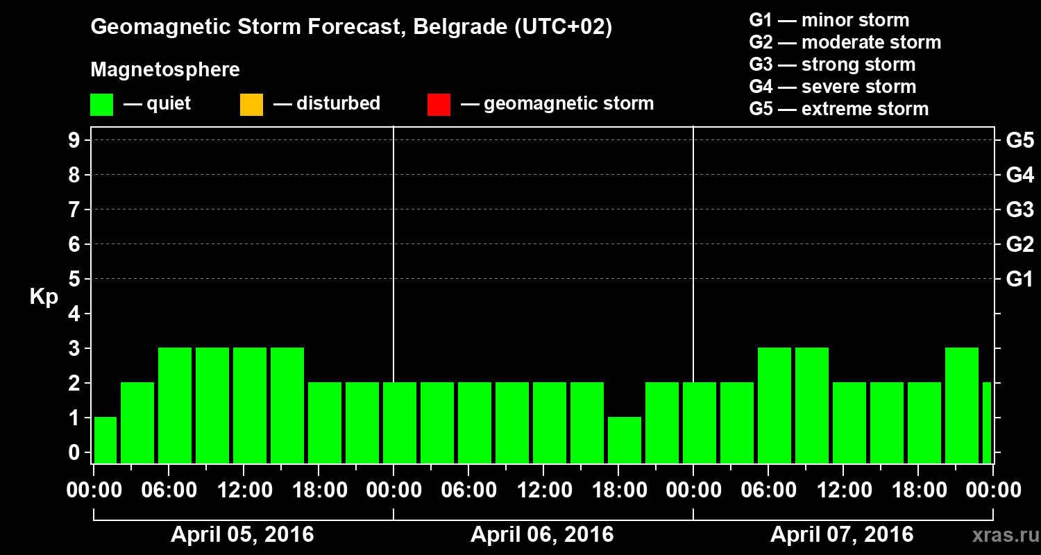 Geomagnetic storm forecast in Belgrade for Apr 05, 2016