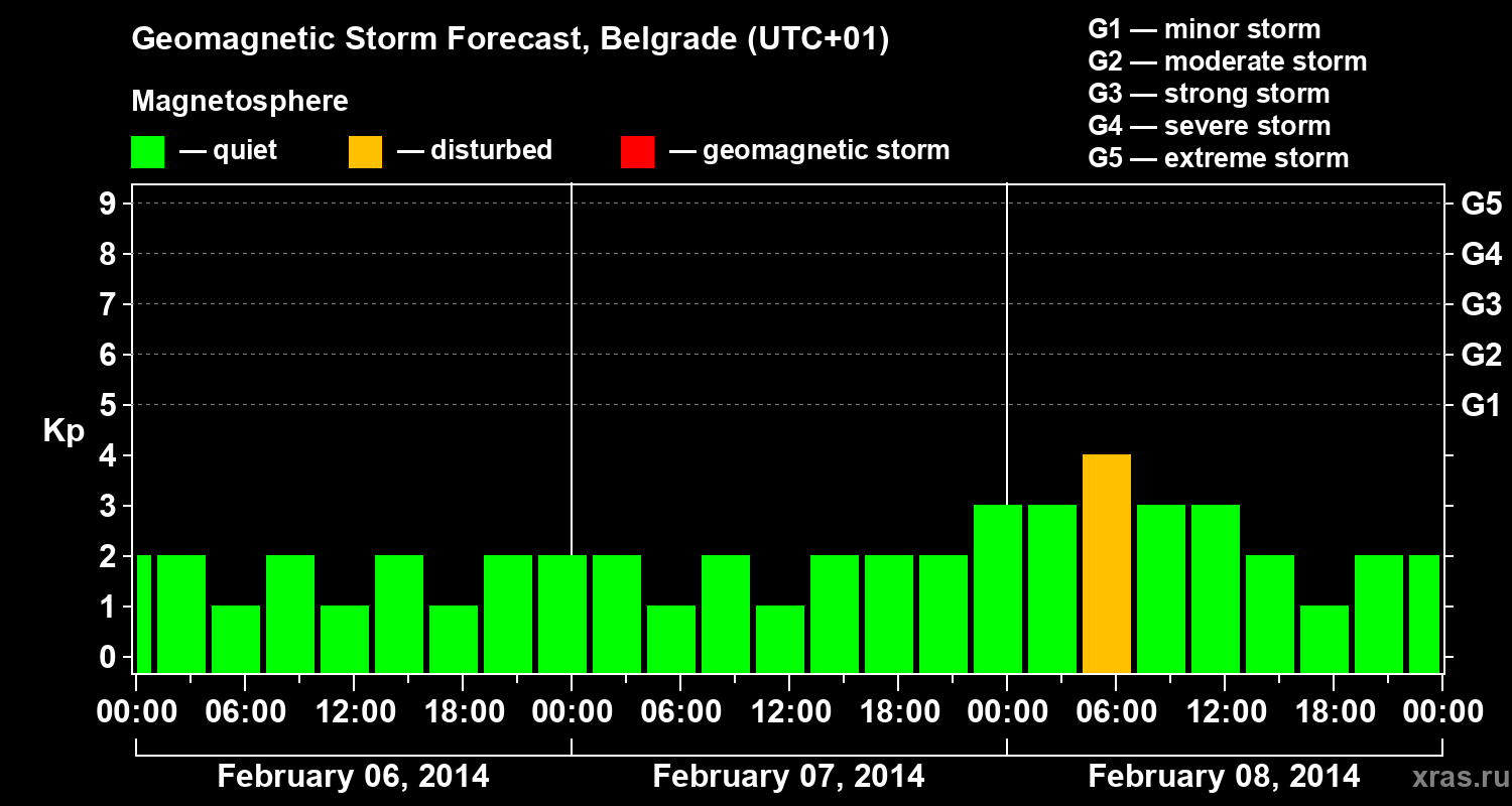Geomagnetic storm forecast in Belgrade for Feb 06, 2014