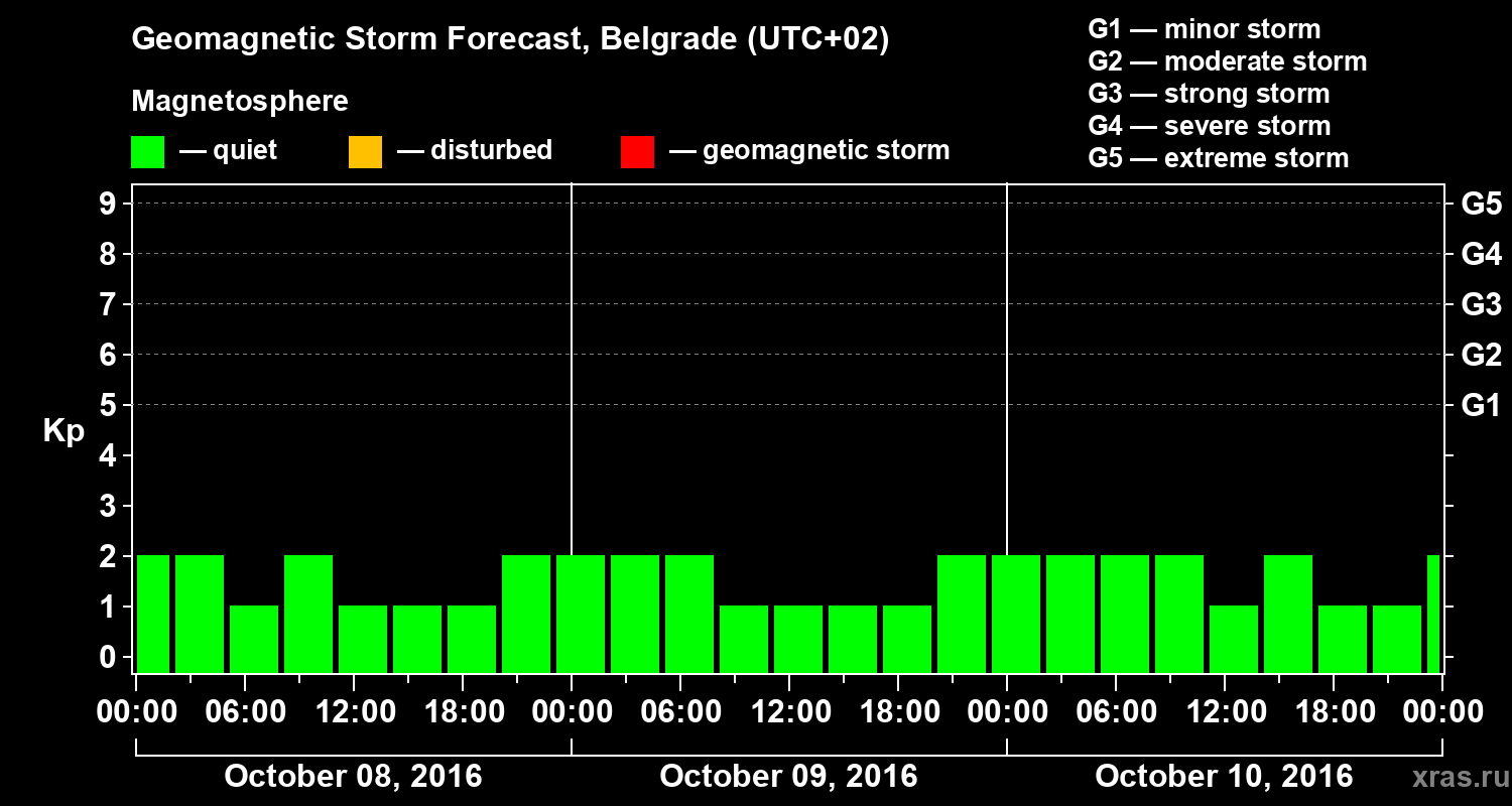 Geomagnetic activity forecast in Belgrade — Oct 08, 2016