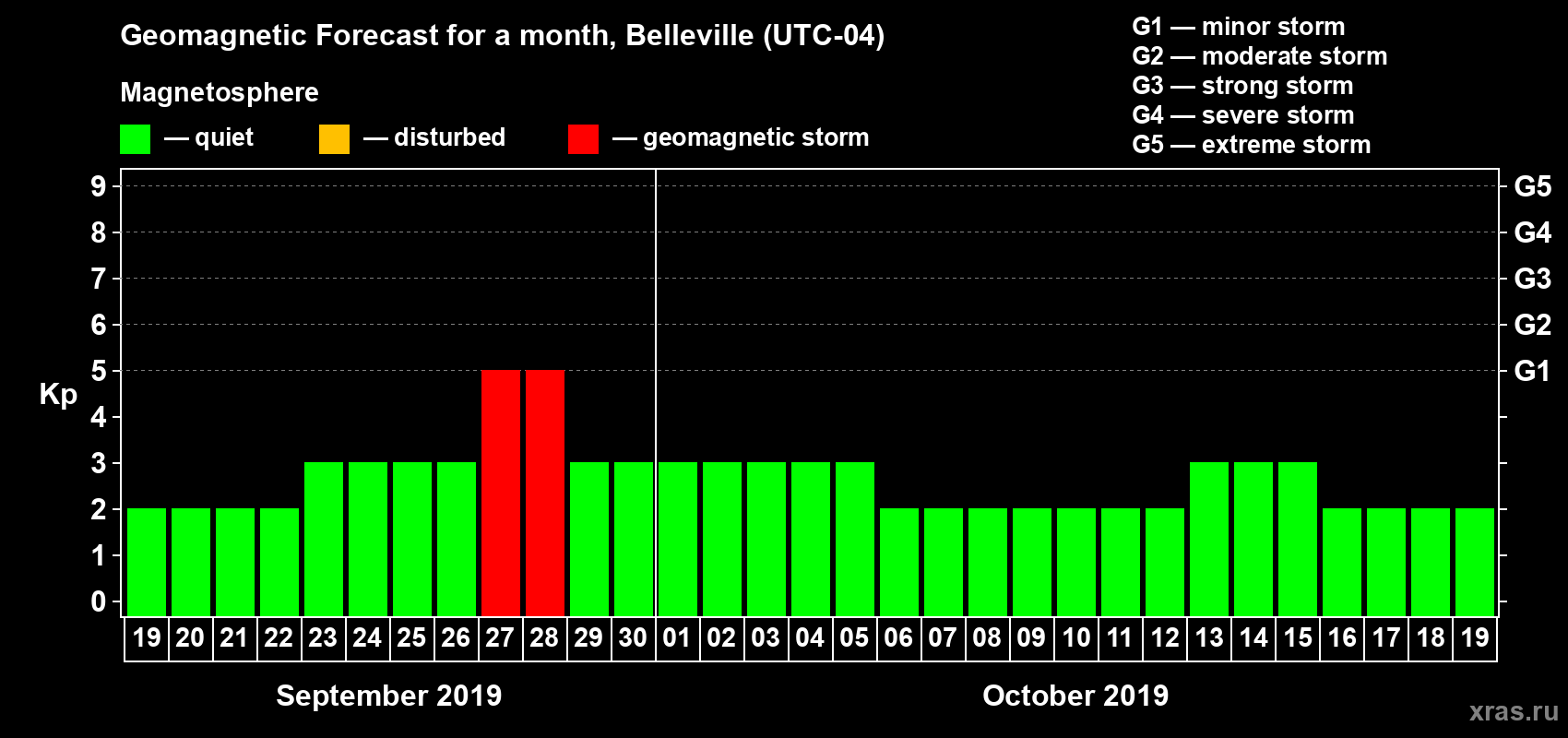 Geomagnetic storm forecast in Belleville for Sep 19, 2019