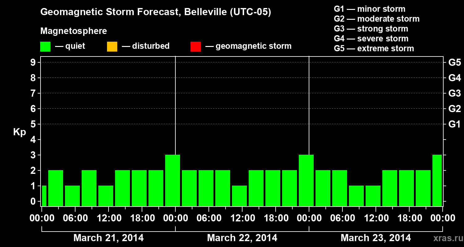 Geomagnetic storm forecast in Belleville for Mar 21, 2014