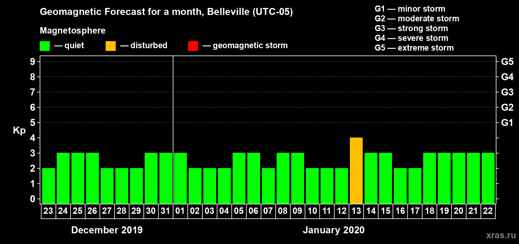 Geomagnetic storm forecast in Belleville for Dec 23, 2019
