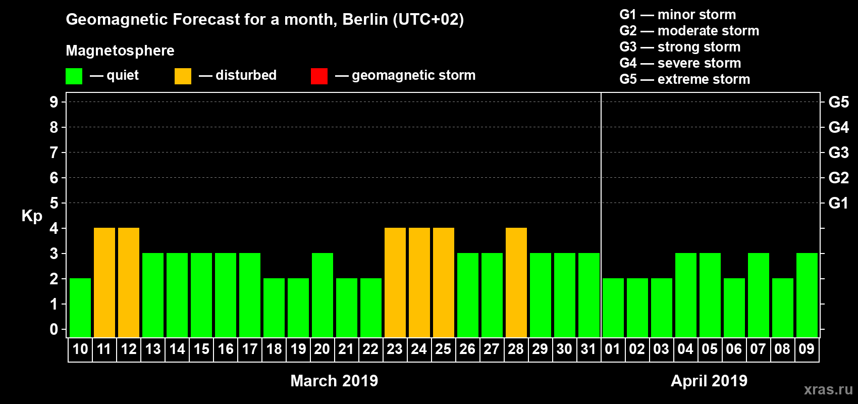 Geomagnetic storm forecast in Berlin for Mar 10, 2019