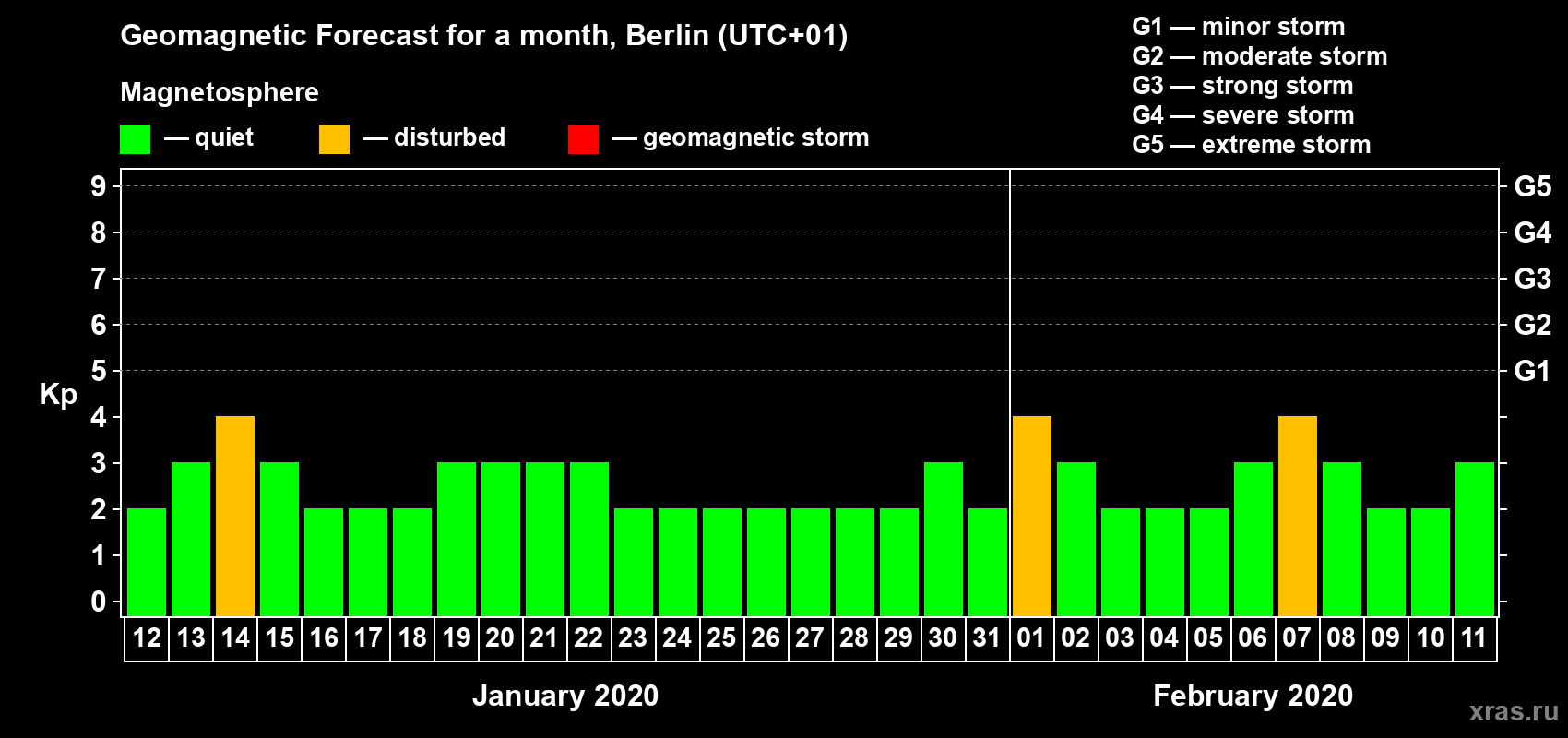 Geomagnetic storm forecast in Berlin for Jan 12, 2020