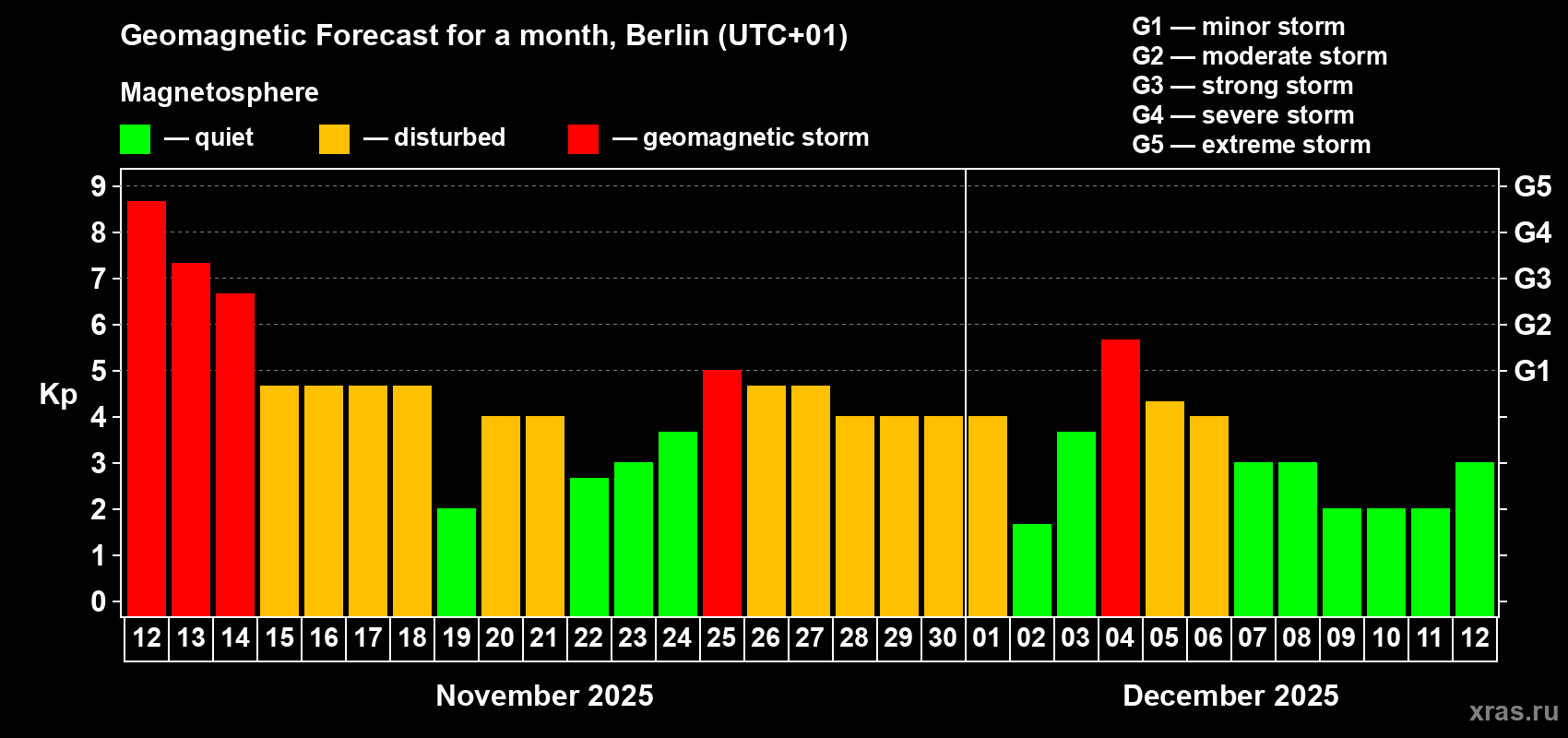 Geomagnetic storm forecast in Berlin for Nov 12, 2025