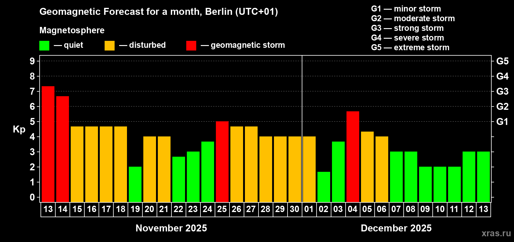 Geomagnetic storm forecast in Berlin for Nov 13, 2025