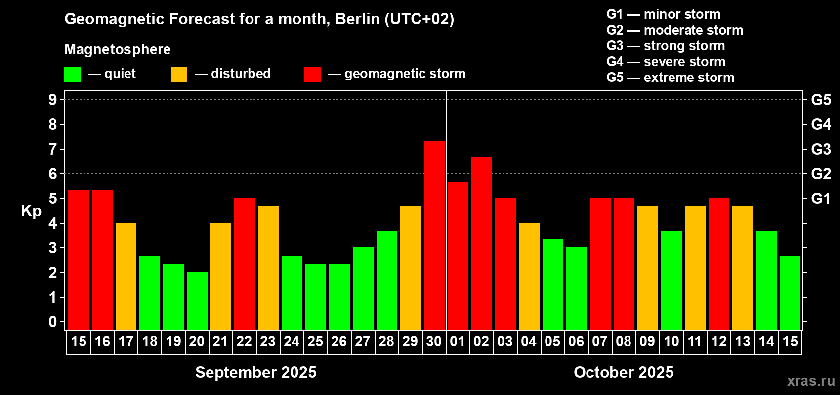 Geomagnetic storm forecast in Berlin for Sep 15, 2025