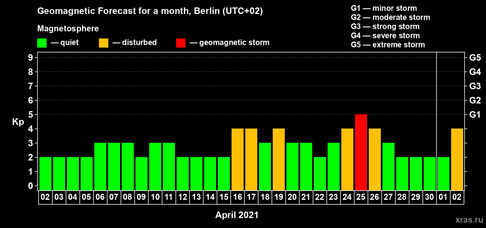 Geomagnetic activity forecast in Berlin — Apr 02, 2021