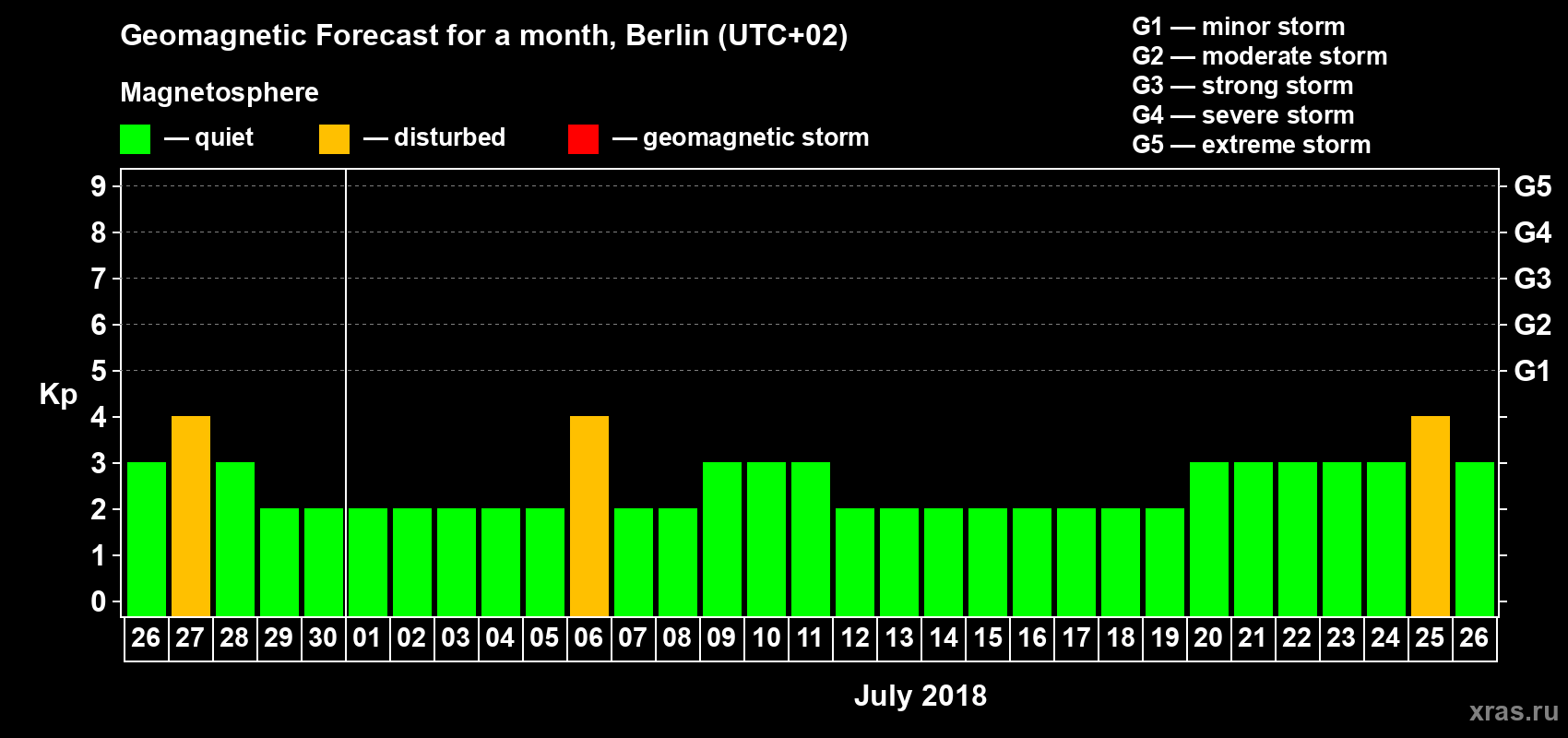 Geomagnetic storm forecast in Berlin for Jun 26, 2018