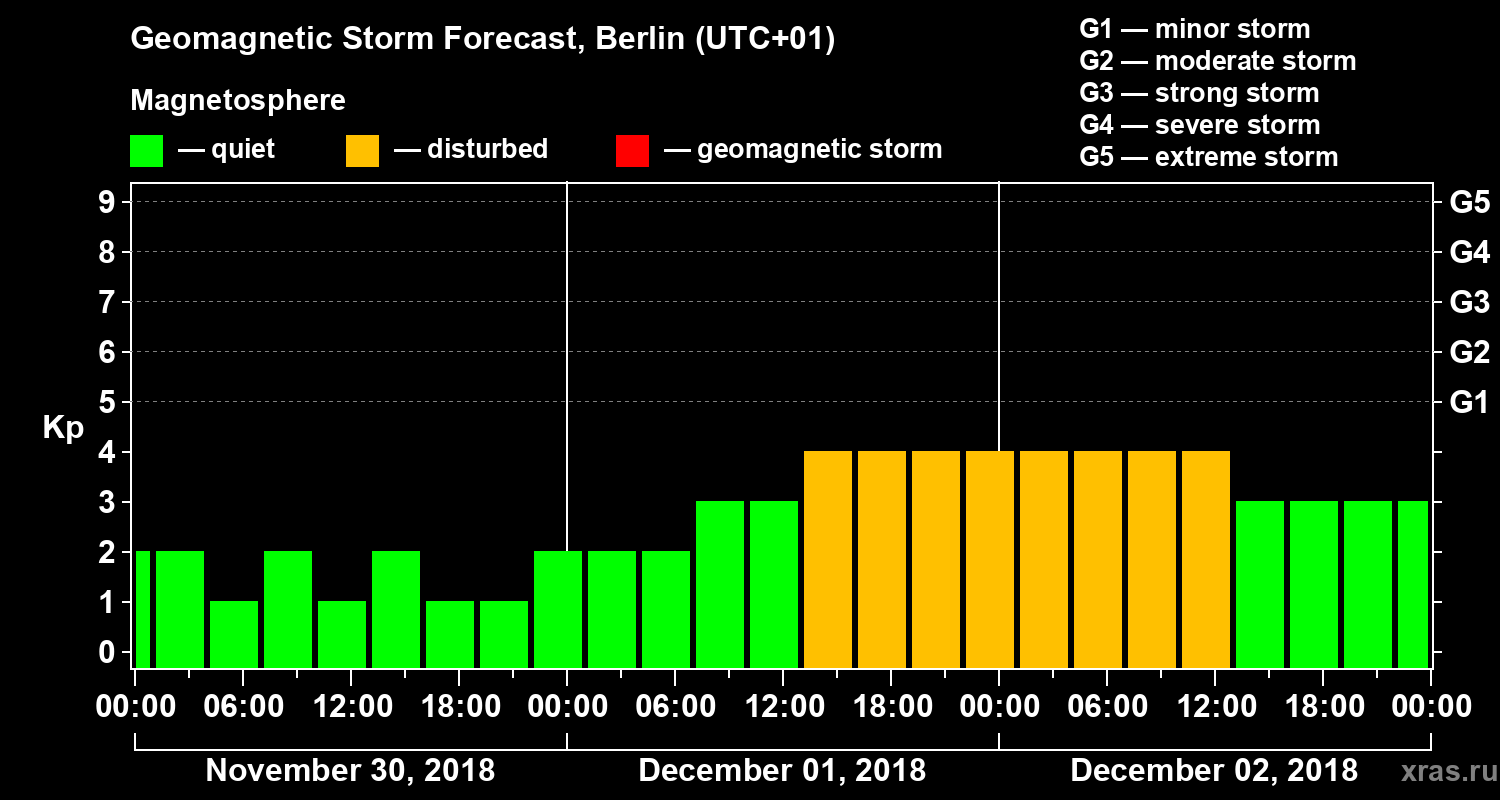 Geomagnetic storm forecast in Berlin for Nov 30, 2018