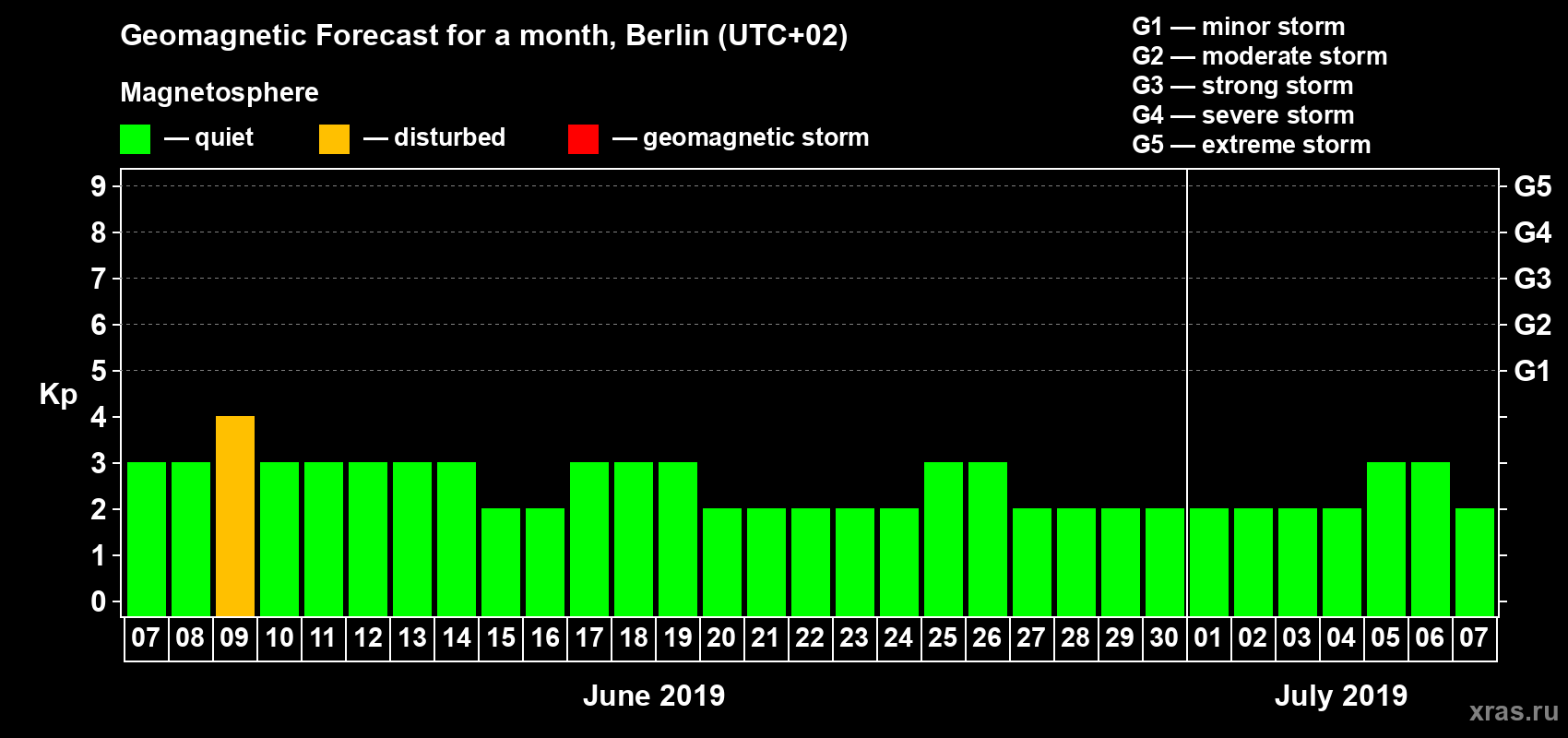 Geomagnetic storm forecast in Berlin for Jun 07, 2019