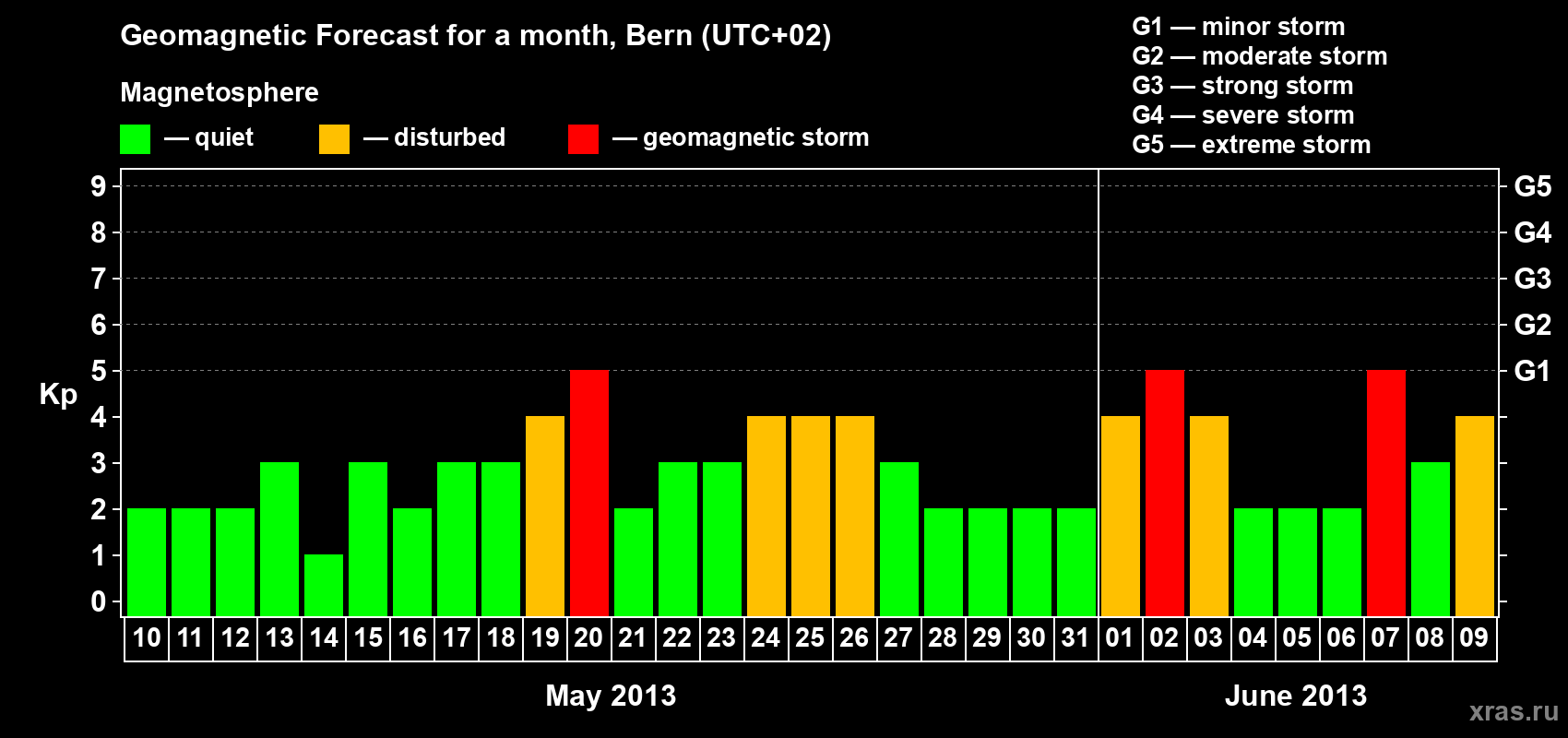 Geomagnetic storm forecast in Bern for May 10, 2013