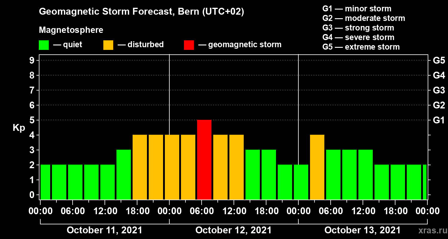 Geomagnetic storm forecast in Bern for Oct 11, 2021