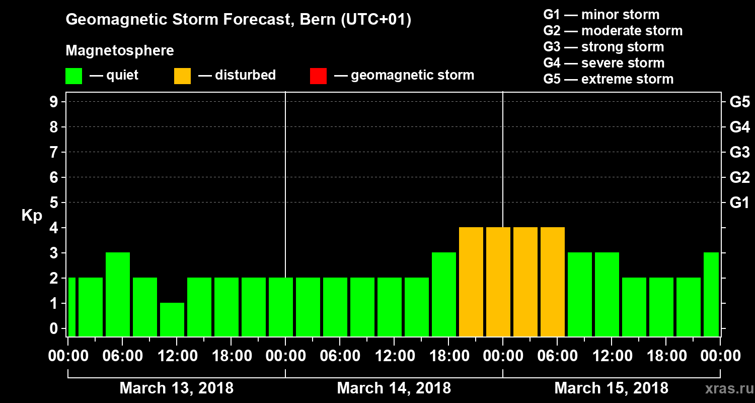 Geomagnetic storm forecast in Bern for Mar 13, 2018
