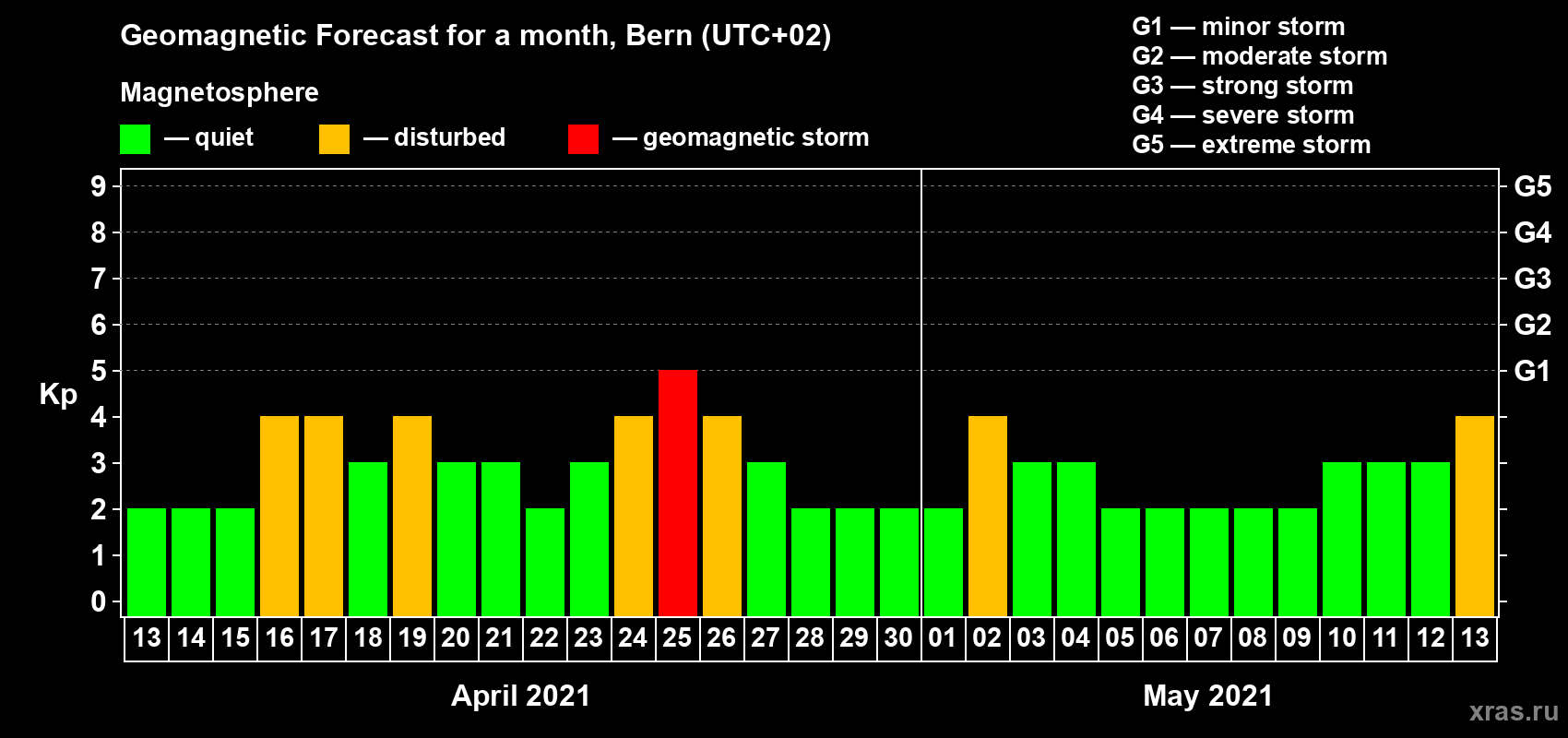 Geomagnetic storm forecast in Bern for Apr 13, 2021