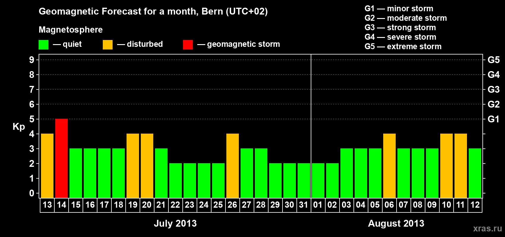 Geomagnetic storm forecast in Bern for Jul 13, 2013