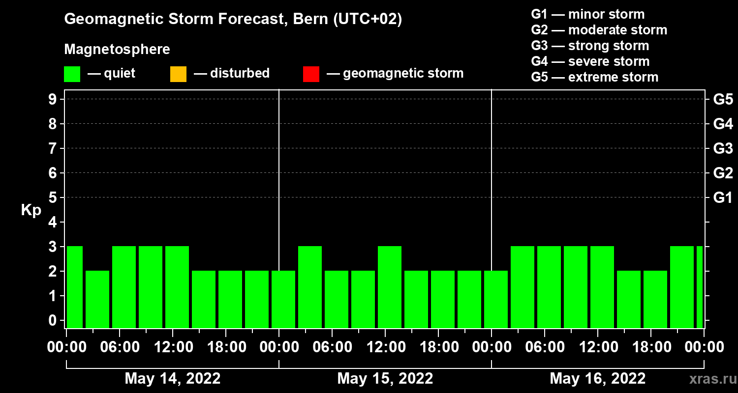 Geomagnetic storm forecast in Bern for May 14, 2022