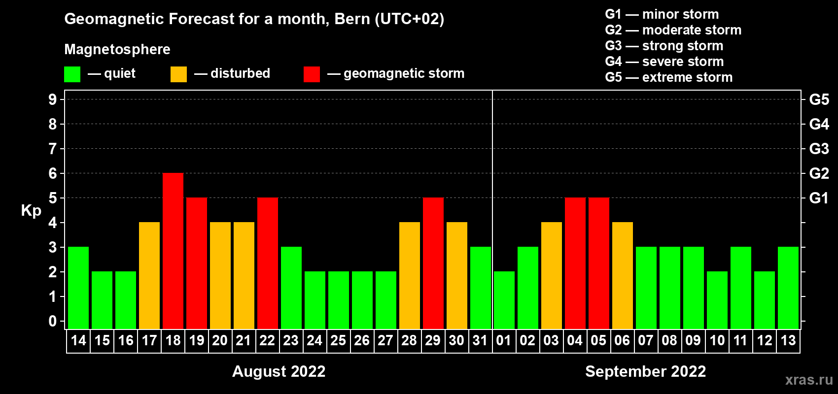 Geomagnetic storm forecast in Bern for Aug 14, 2022