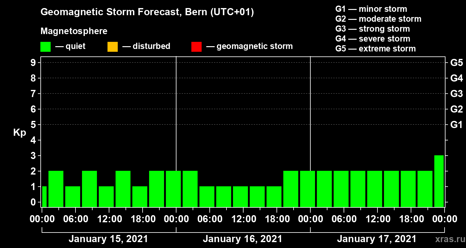 Geomagnetic storm forecast in Bern for Jan 15, 2021