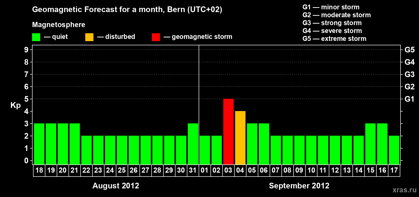 Geomagnetic storm forecast in Bern for Aug 18, 2012