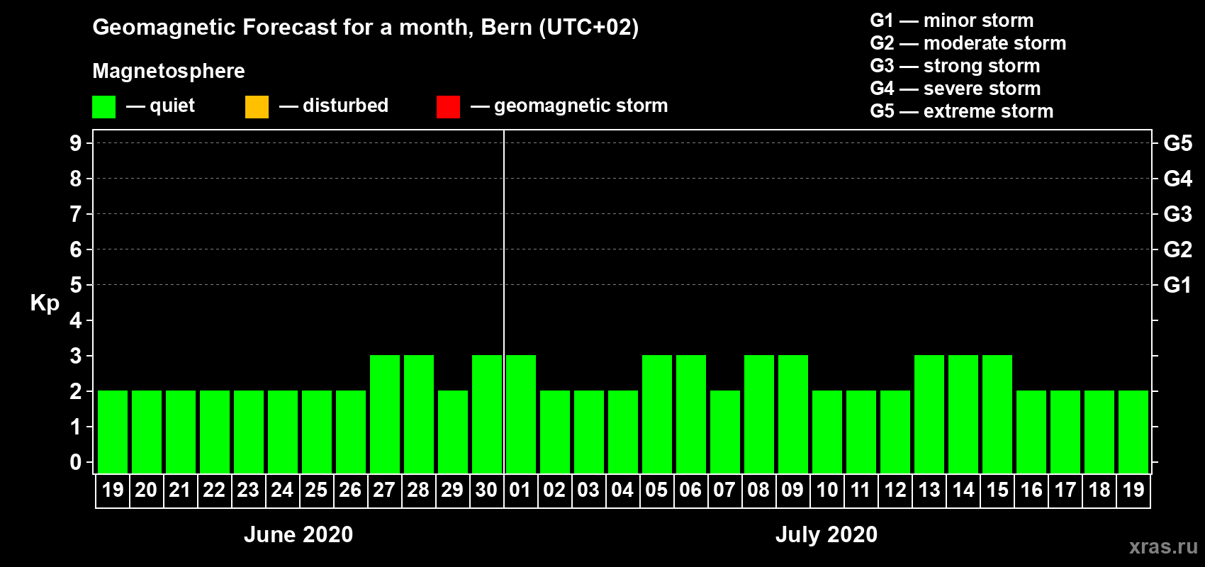 Geomagnetic storm forecast in Bern for Jun 19, 2020