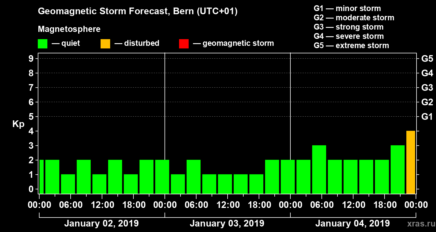 Geomagnetic storm forecast in Bern for Jan 02, 2019