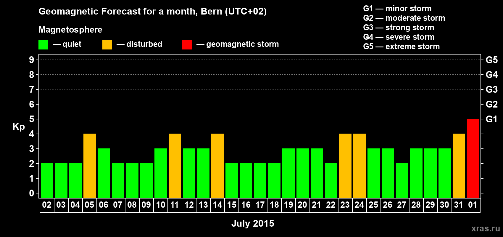 Geomagnetic storm forecast in Bern for Jul 02, 2015