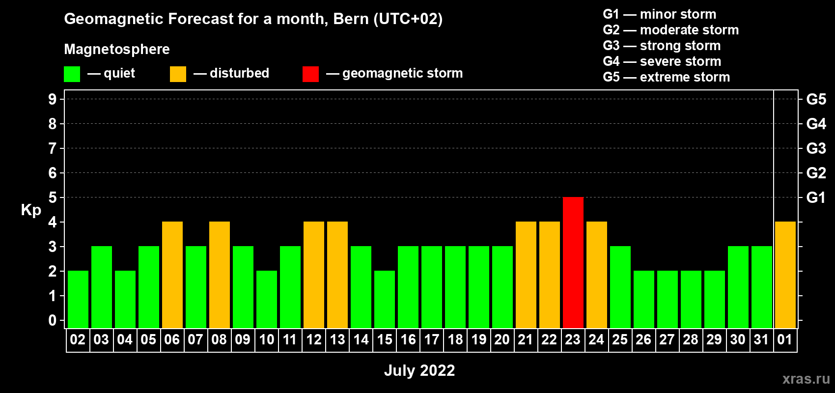 Geomagnetic storm forecast in Bern for Jul 02, 2022