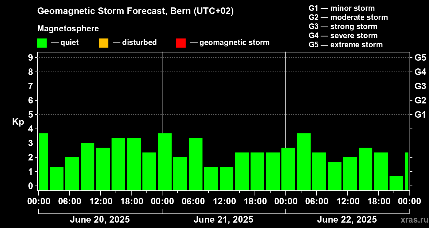 Geomagnetic storm forecast in Bern for Jun 20, 2025