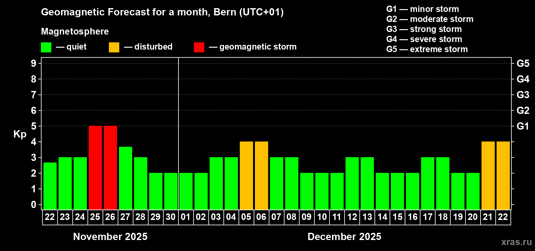 Geomagnetic storm forecast in Bern for Nov 22, 2025