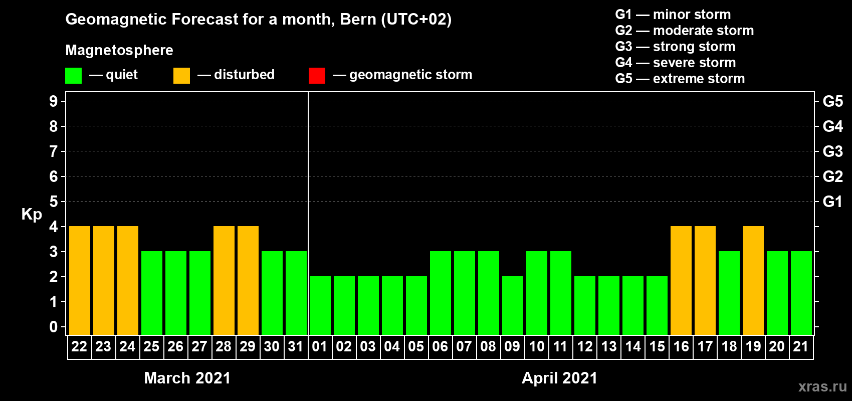 Geomagnetic storm forecast in Bern for Mar 22, 2021
