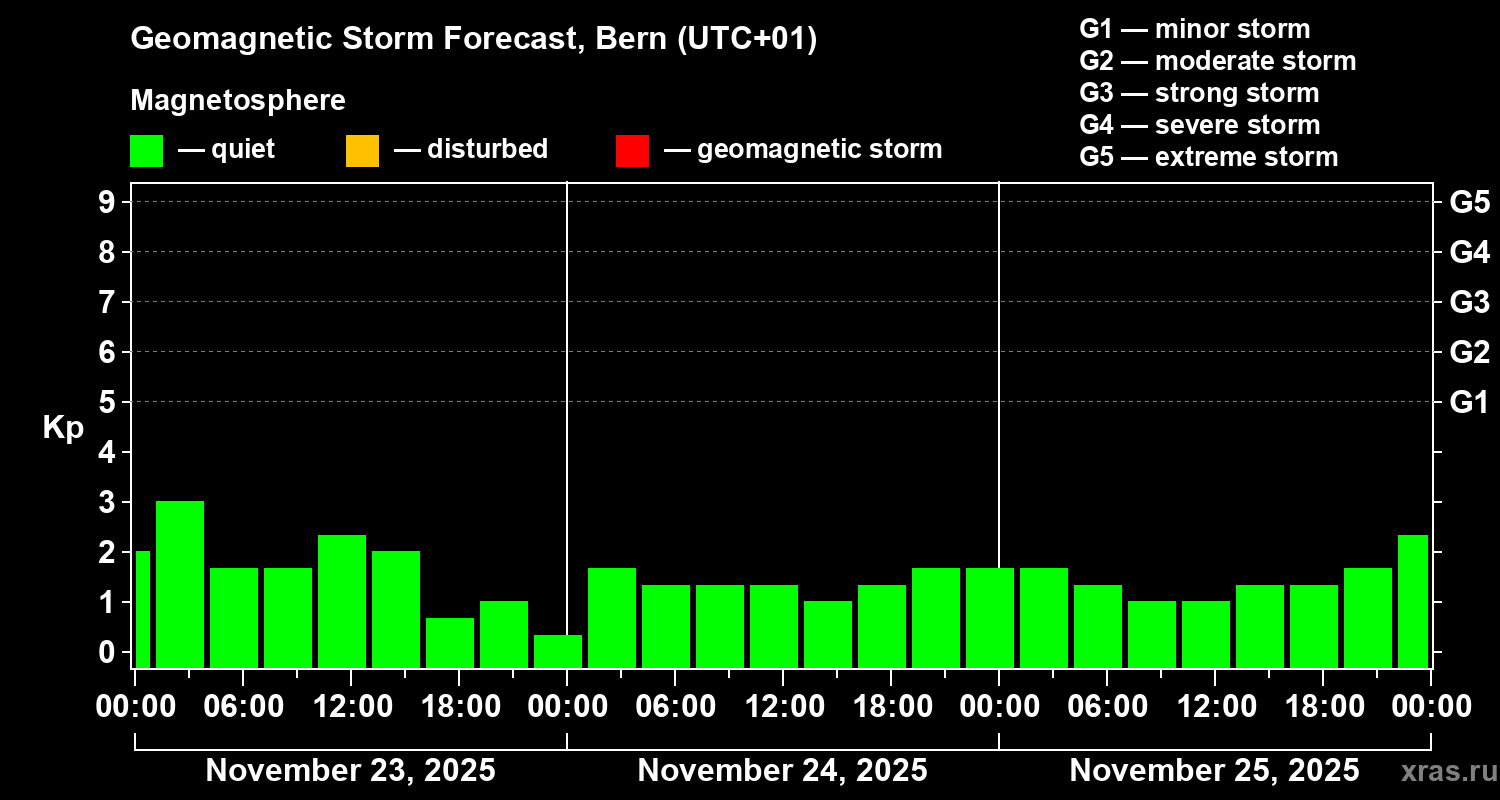 Geomagnetic storm forecast in Bern for Nov 23, 2025