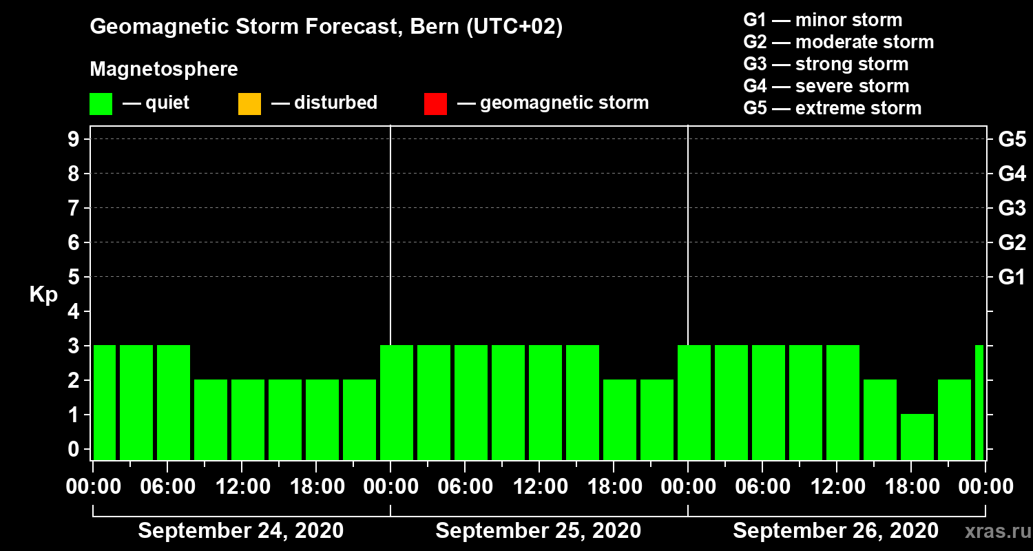 Geomagnetic storm forecast in Bern for Sep 24, 2020