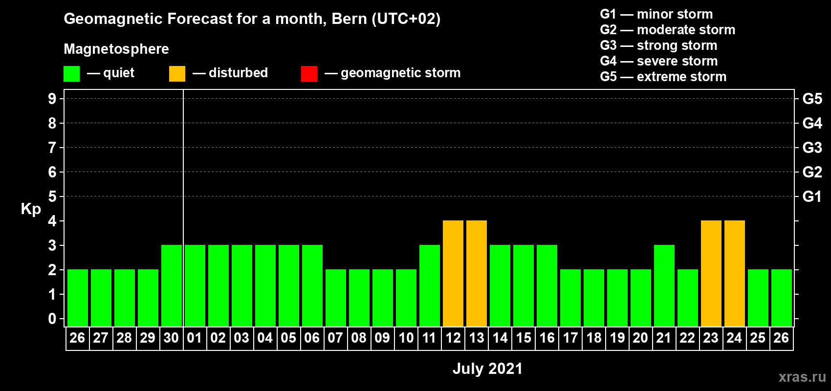 Geomagnetic storm forecast in Bern for Jun 26, 2021