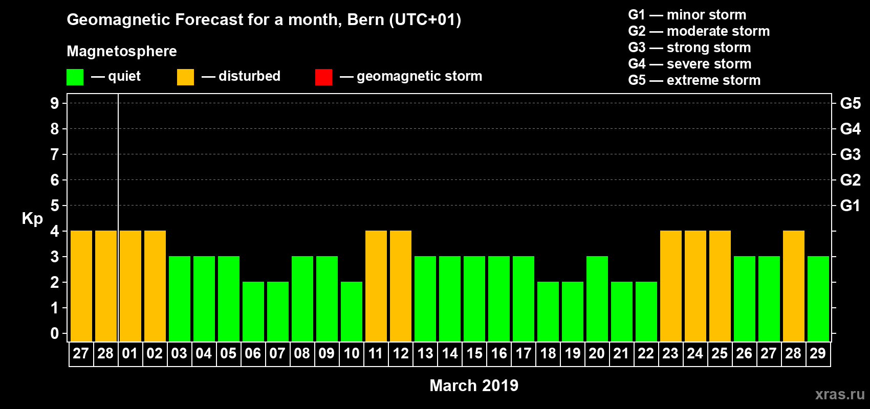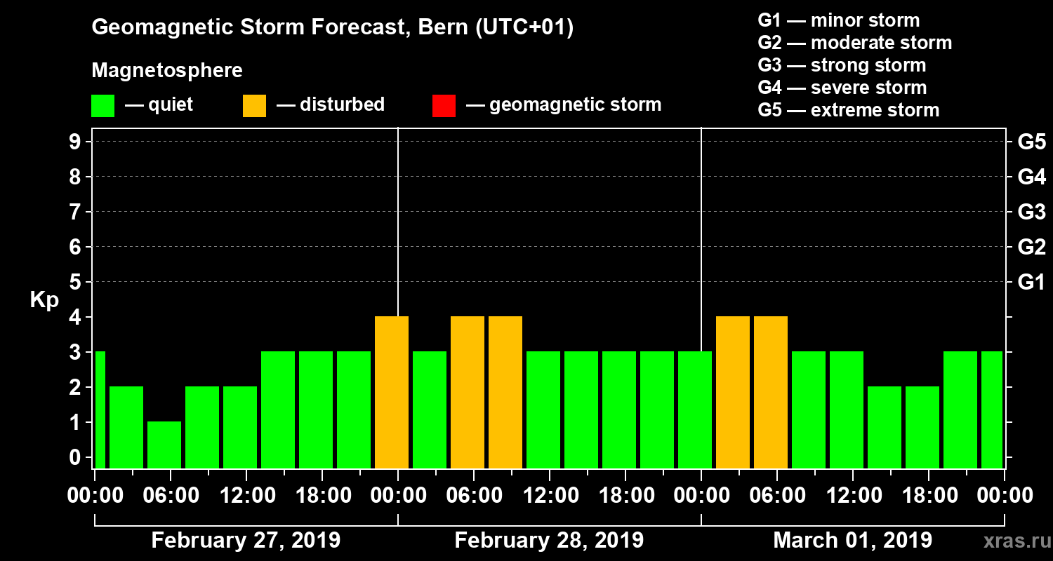 Geomagnetic storm forecast in Bern for Feb 27, 2019